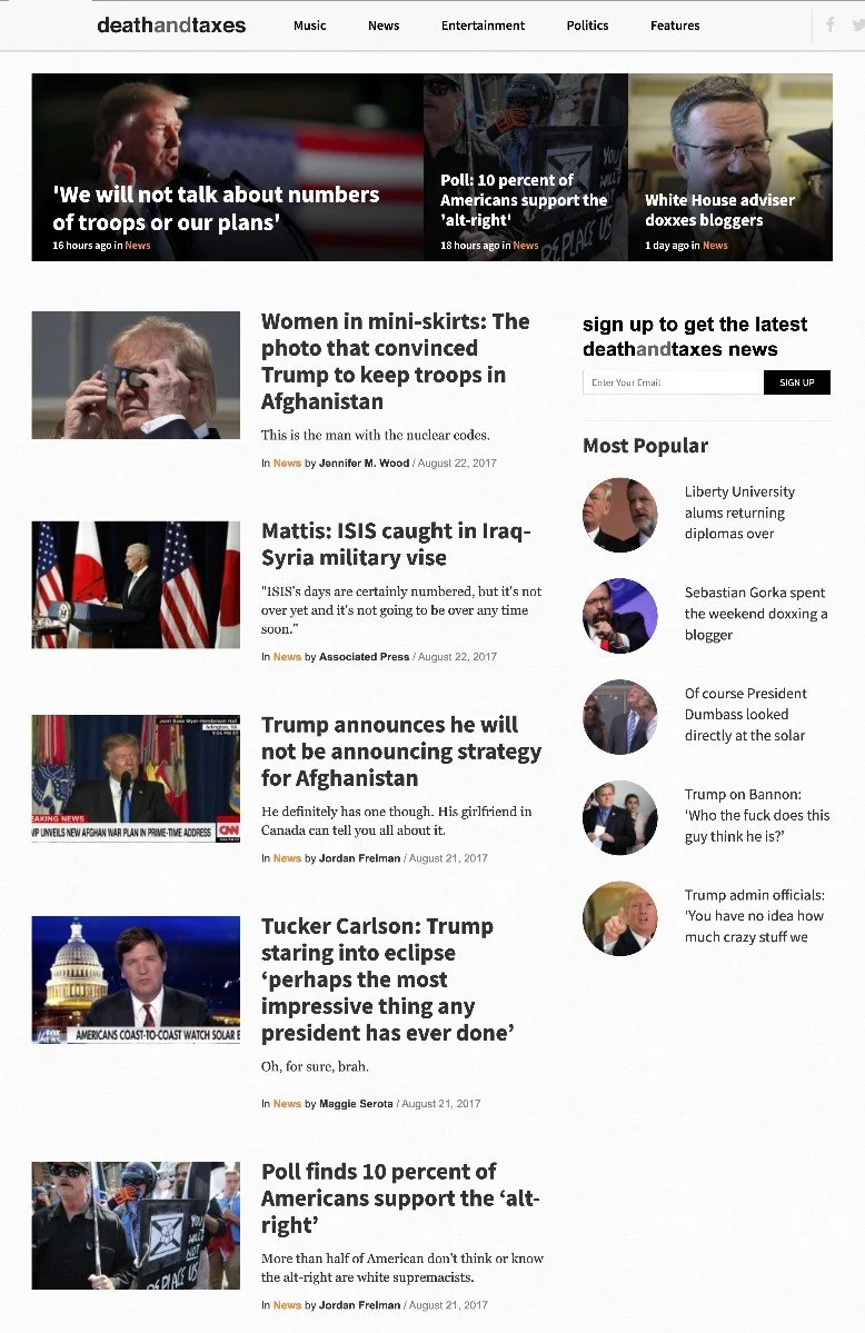 As editor in chief of Death and Taxes Magazine, I oversaw a team of five full-time writers and a rotating pool of freelancers to produce high-volume progressive news with limited resources. Site traffic climbed to nearly five million monthly unique visitors at its peak.